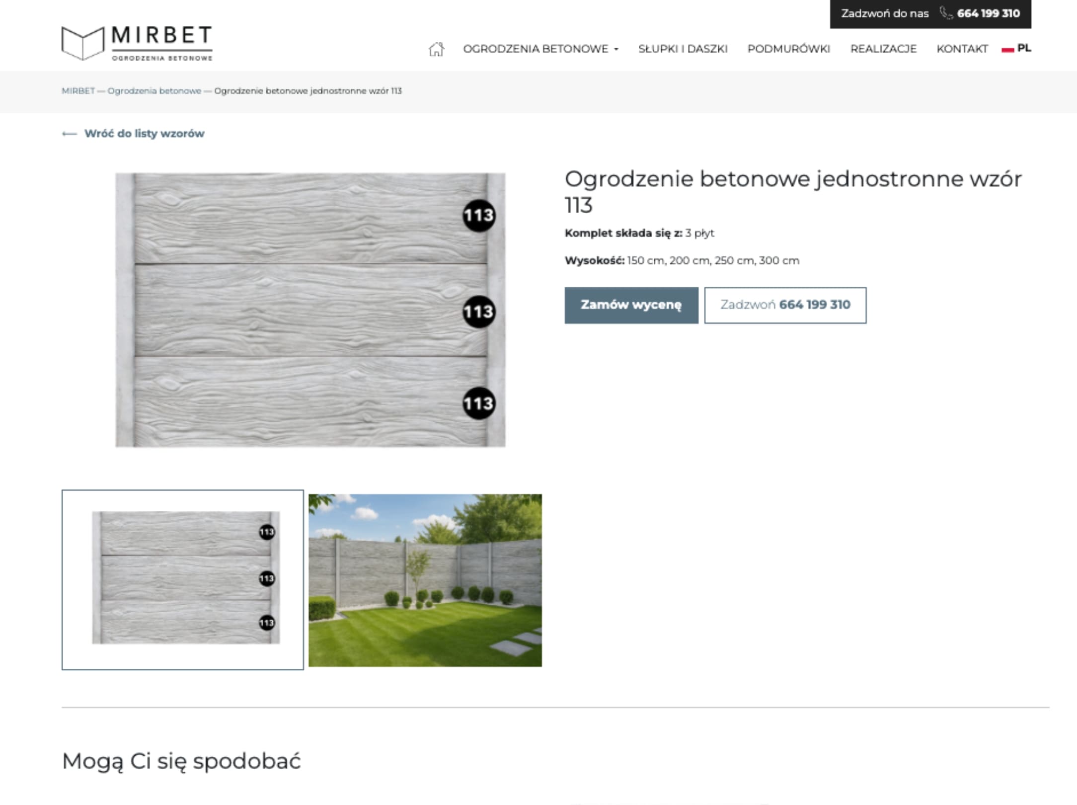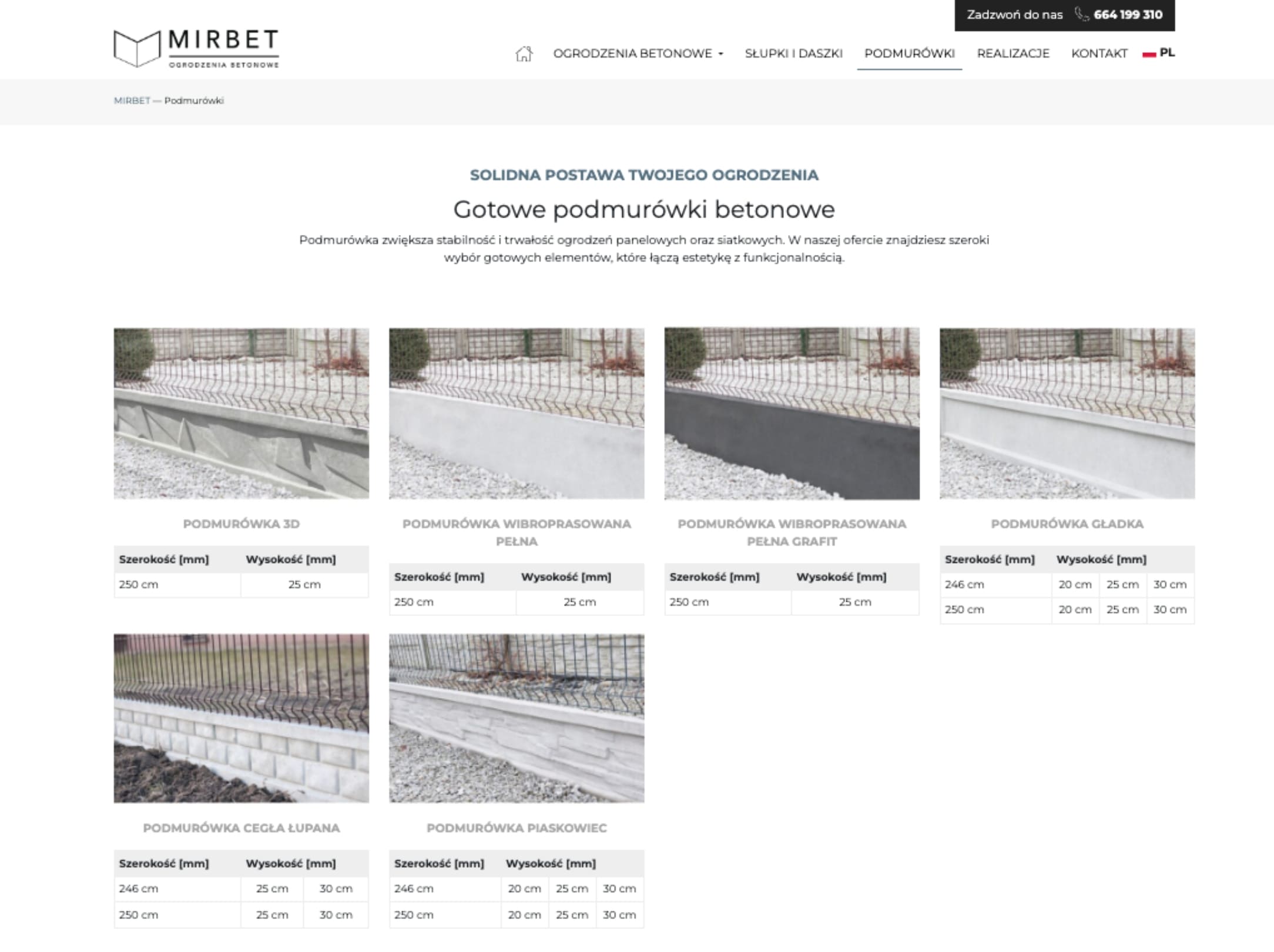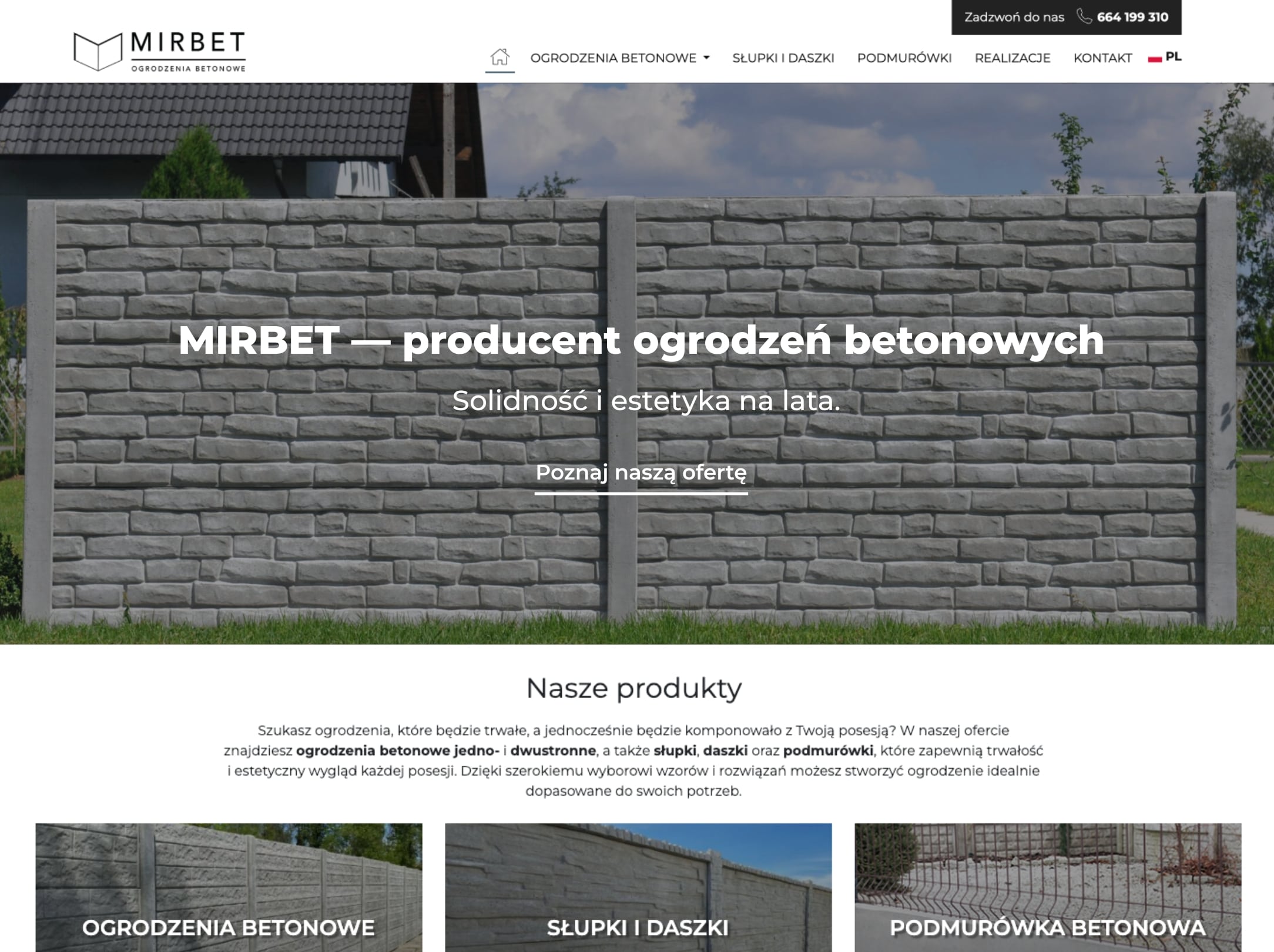 Dotychczasowa strona internetowa producenta ogrodzeń betonowych nie spełniała współczesnych standardów wizualnych i technicznych.